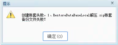 想创建一个新的账套,可是提示创建账失败,1、restoredatabaselocal解压.zip账套备份文件失败!如下图,是什么原因呢?