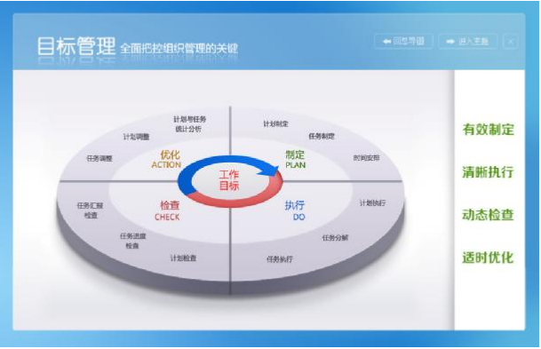 • 任务安排以安排自身、他人分派、分解。实现有效制定、清晰执行、动态检查、适时优化,