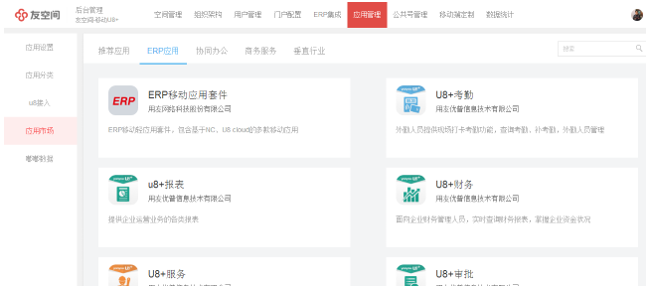 3、添加轻应用移动轻应用可以在友空间应用市场中能够找到相关应用,并进行添加即可。