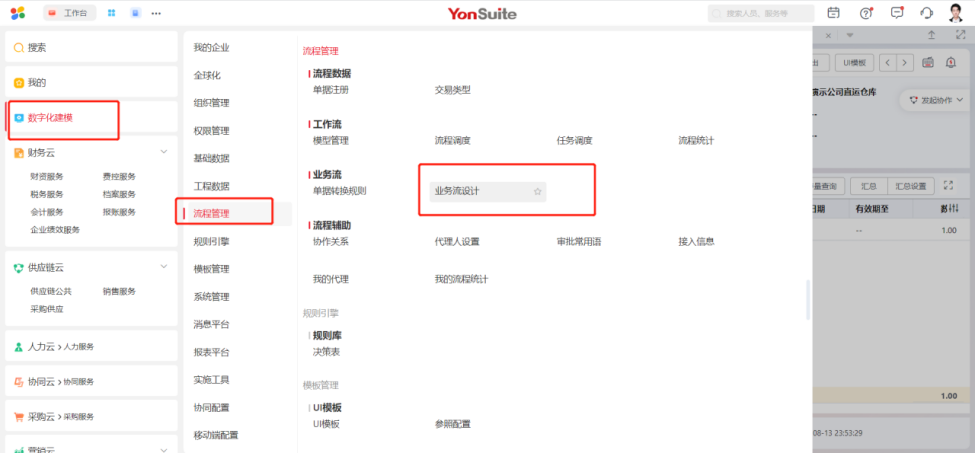 路径:应用平台 > 数字化建模 > 业务流 > 业务流>业务流设计