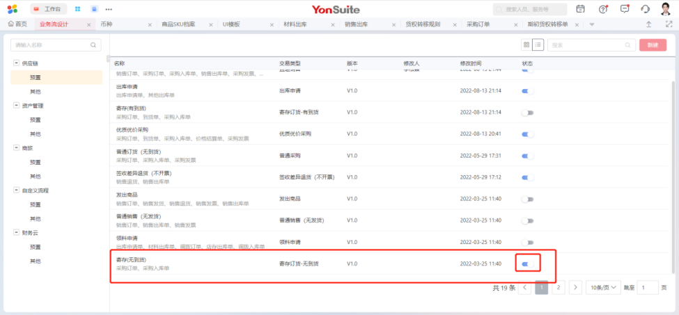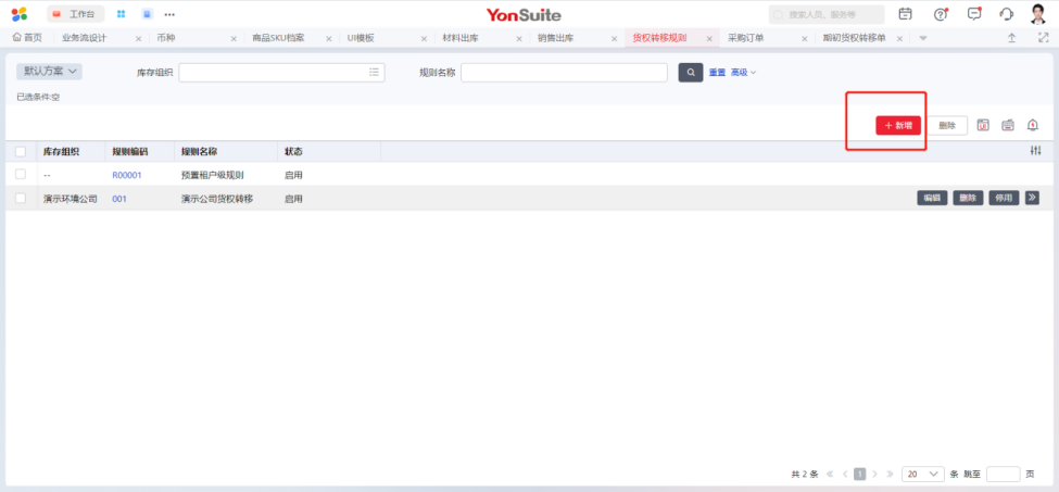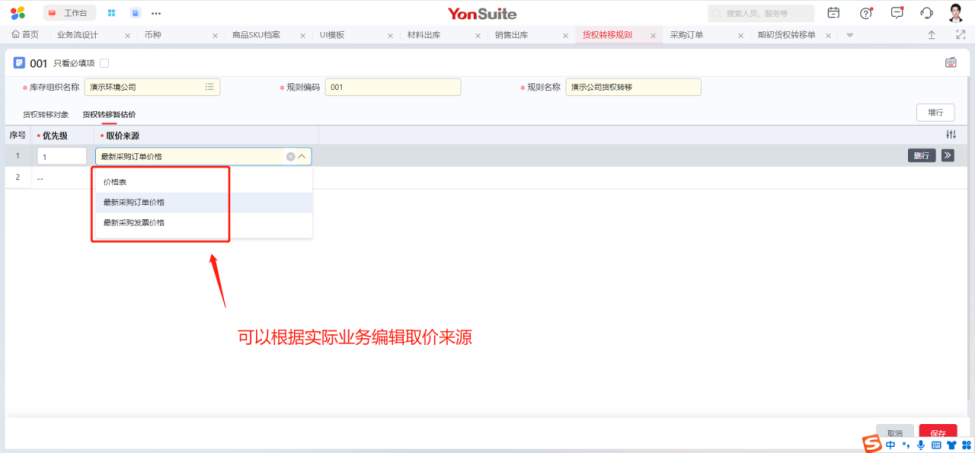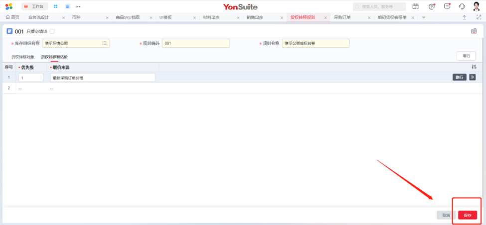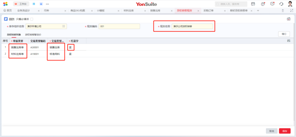 4. 货权转移规则设置“材料出库单”以及“销售出库单”的货权转移规则
