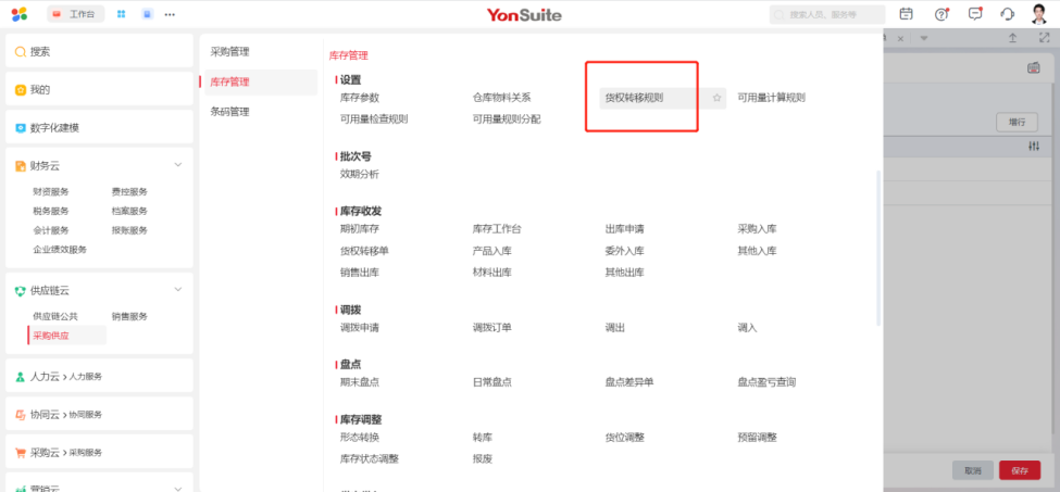 路径:供应链云 > 采购供应 > 库存管理 > 设置