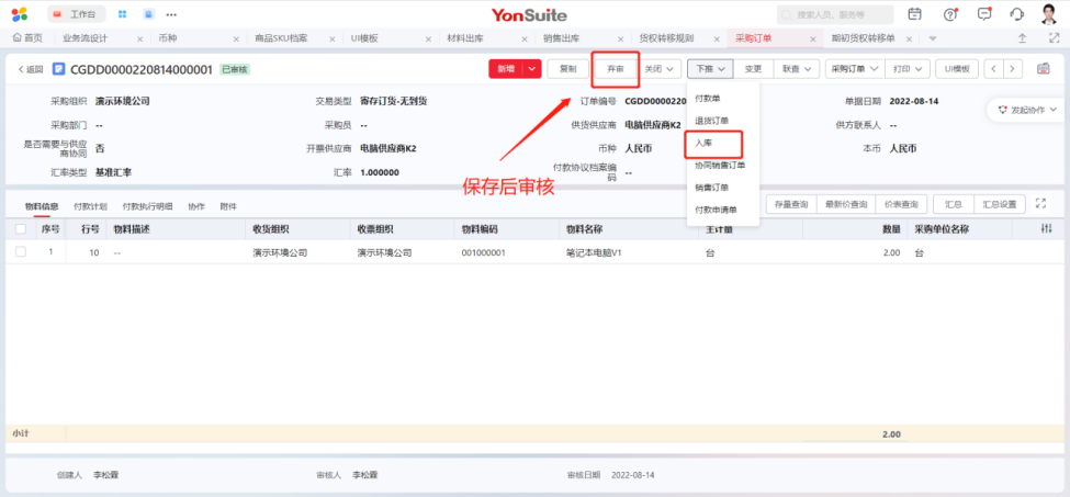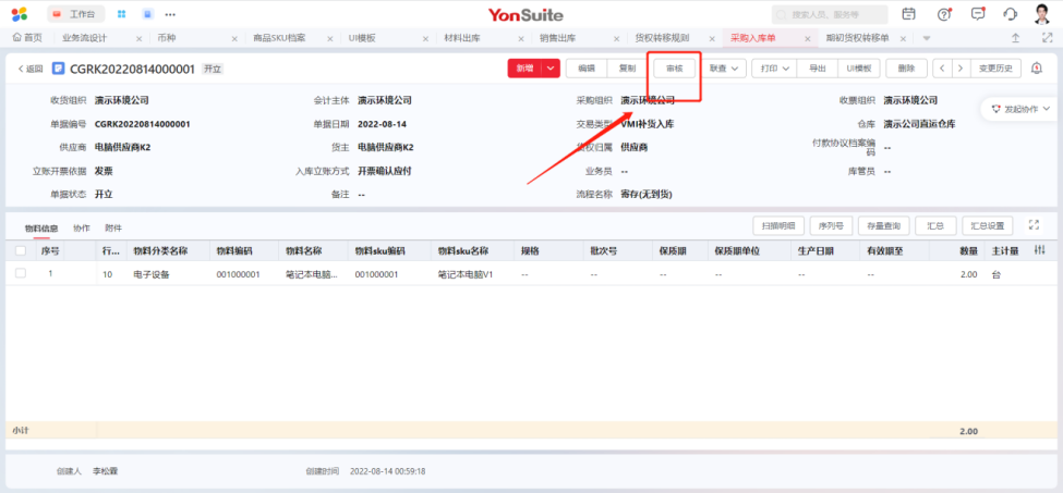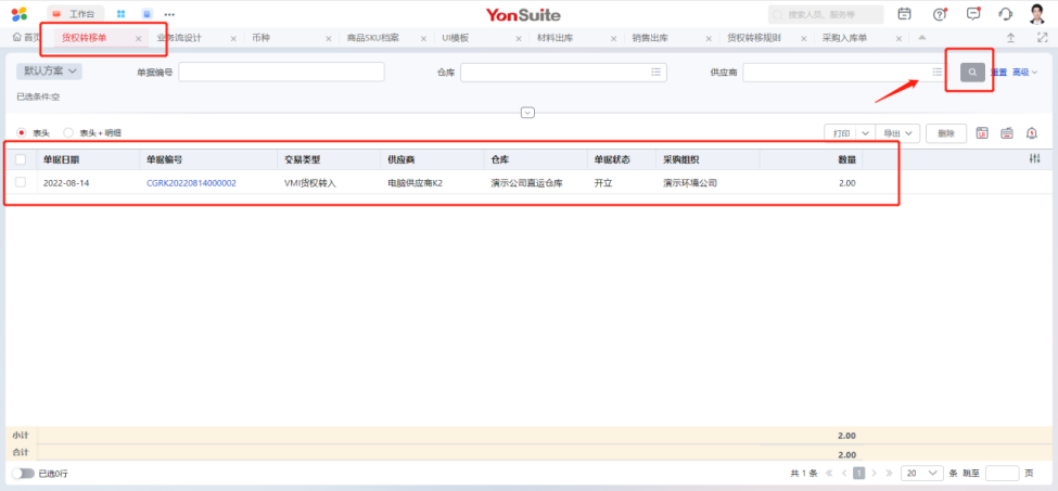 材料出库单审核后,系统会自动生成“货权转移单” 路径:供应链云 > 采购供应 > 库存管理 > 库存收发