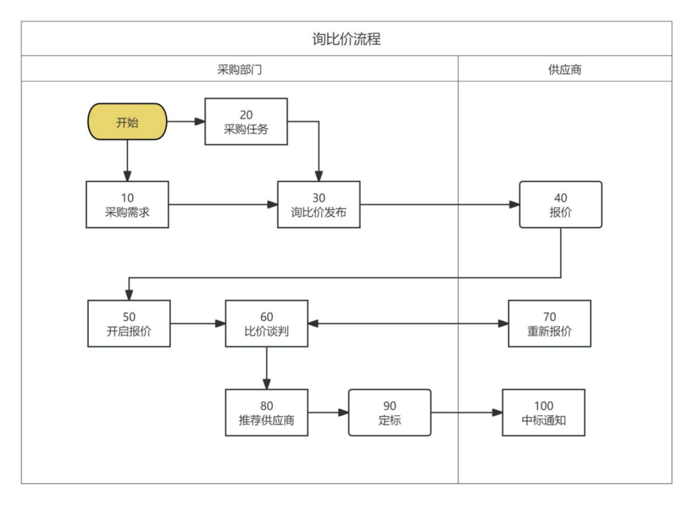 30 | 发布询比价 | 采购员将询价单提交发起审批,审批通过后发布询比价 | 采购员 | |||