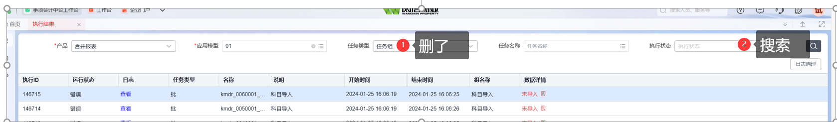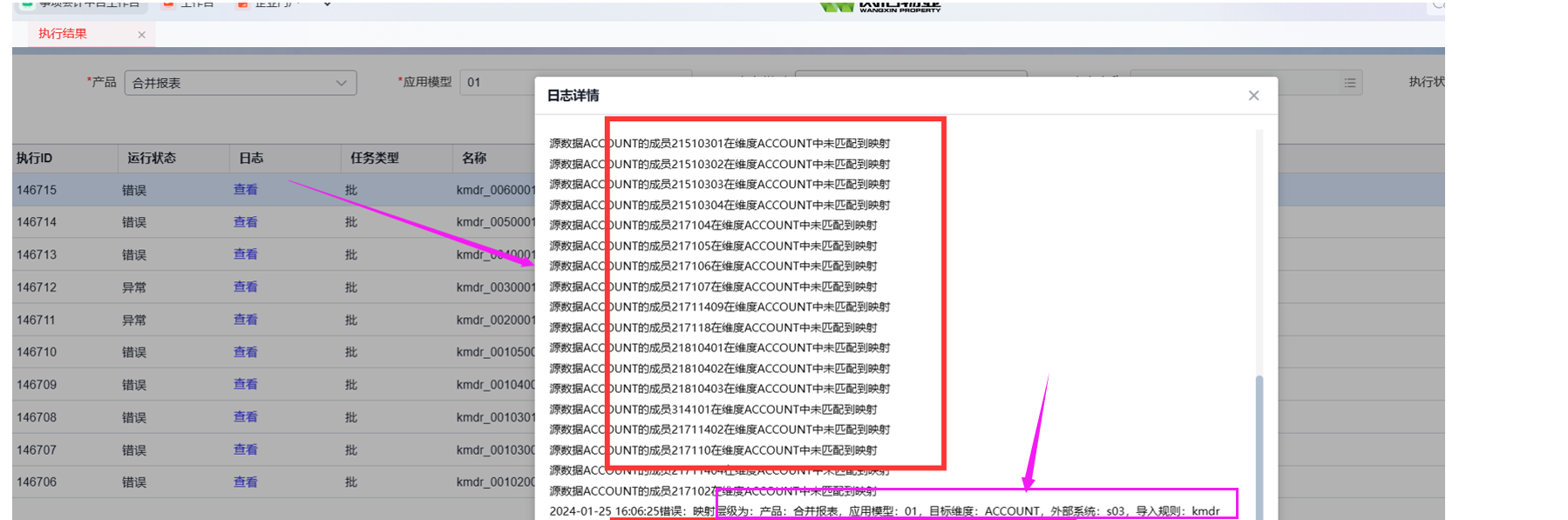 用户反馈在合并报表执行数据导入后,运行状态显示错误,怎么查询错误的具体内容呢?