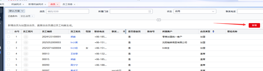 如果是加盟店店员,则通过【店员档案】中新建店员。