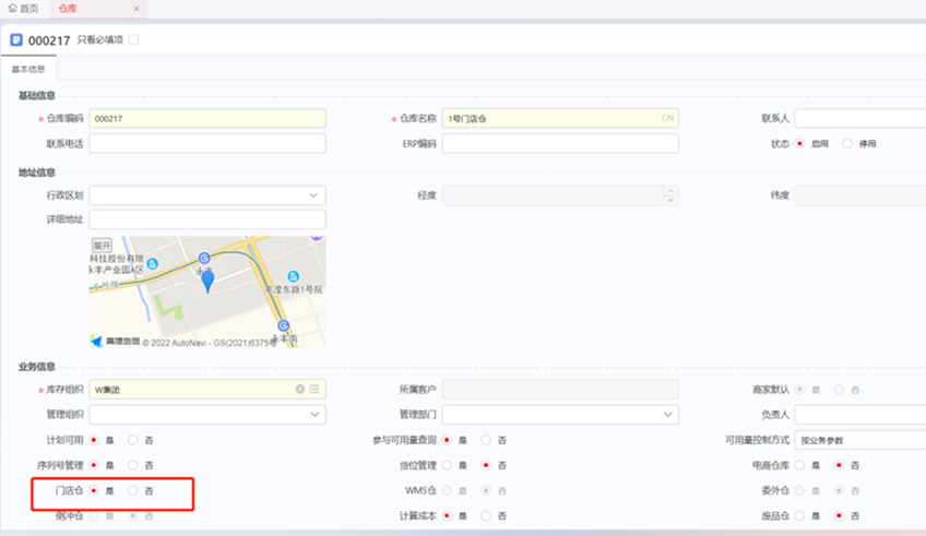 维护门店仓、以及与门店有货物流转关系的总仓。门店仓,需勾选“门店仓”标识。
