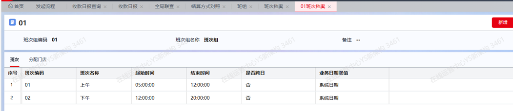 维护门店班次时间,用于店员登陆门店端和零售开单时记录所属班次信息