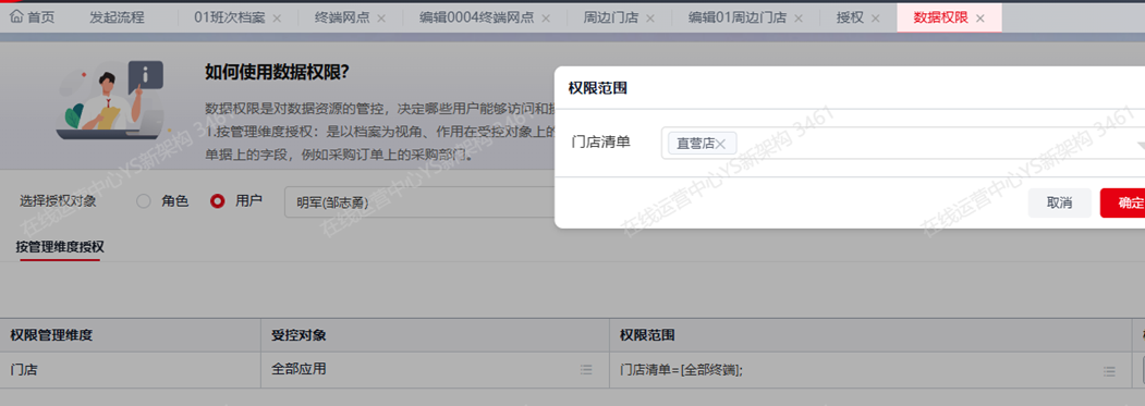 并且在数据权限中,分配店员负责门店;