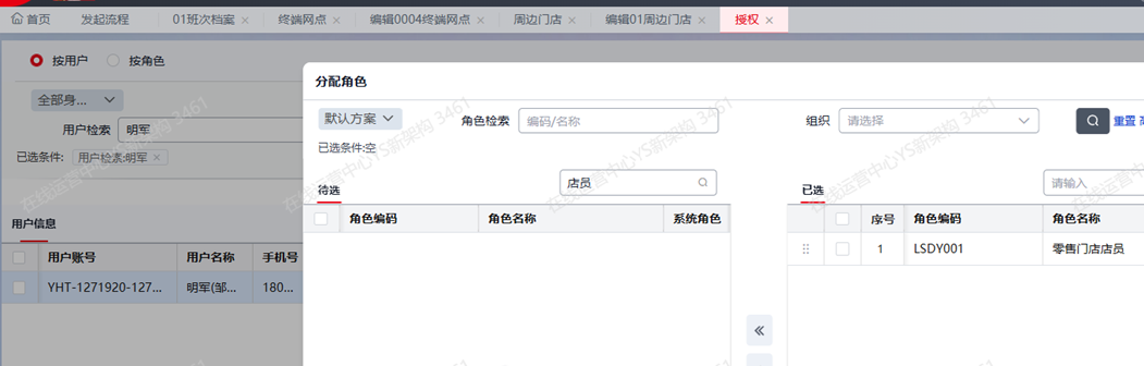 分配店员勾选了门店权限的角色;