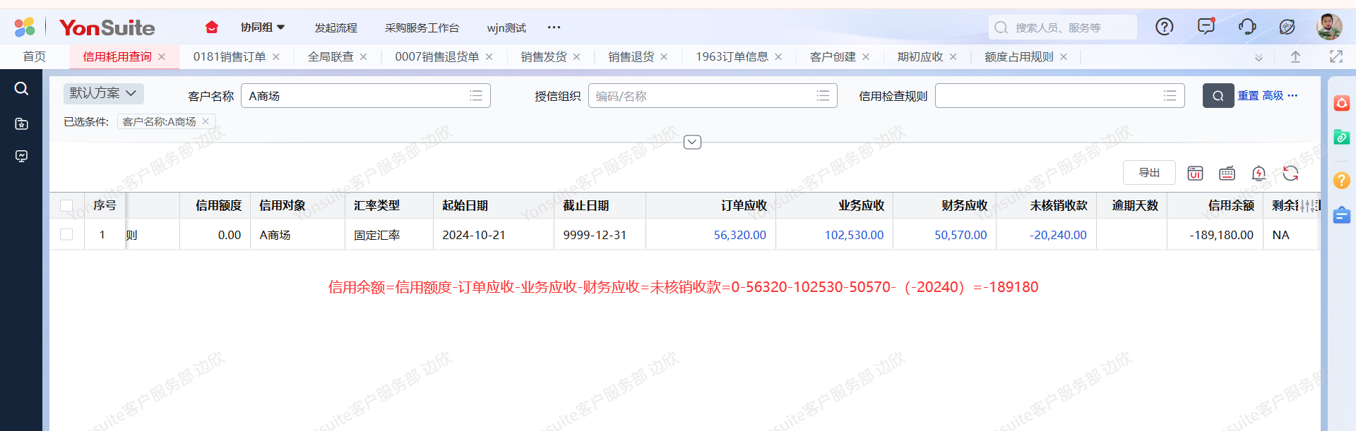2、信用余额取数逻辑:信用余额=信用额度- 订单应收 - 业务应收 - 财务应收 - 未核销收款。